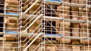 Immeuble en travaux avec échafaudage